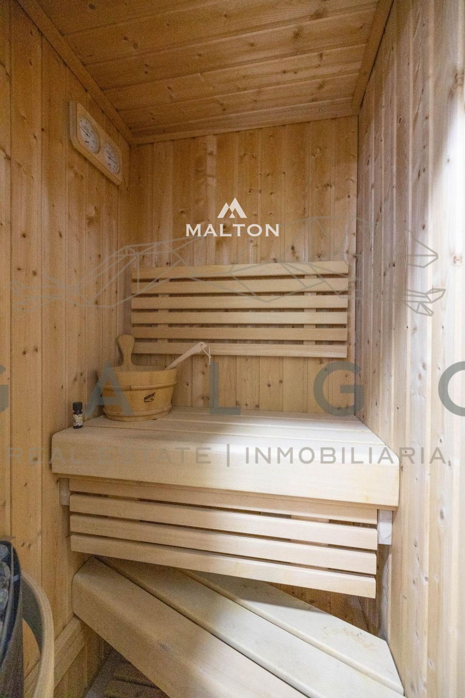 Dispone de una habitación principal con baño en suite y sauna privada, una habitación doble, una habitación sencilla y un baño completo adicional.