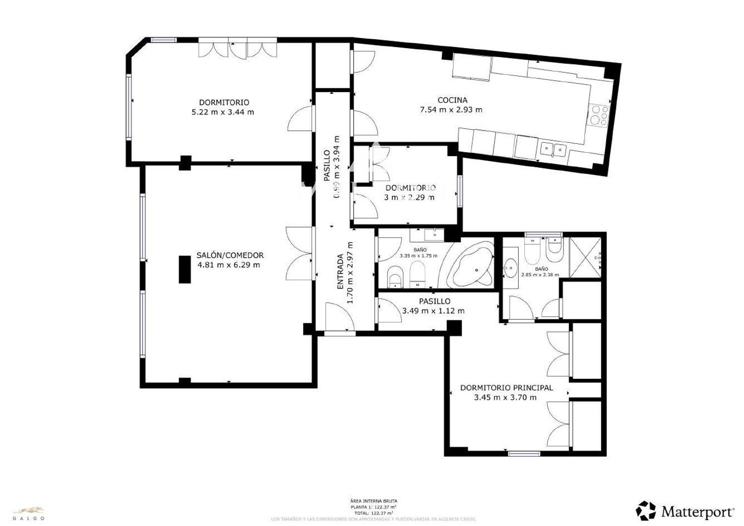 3 habitaciones, 2 baños